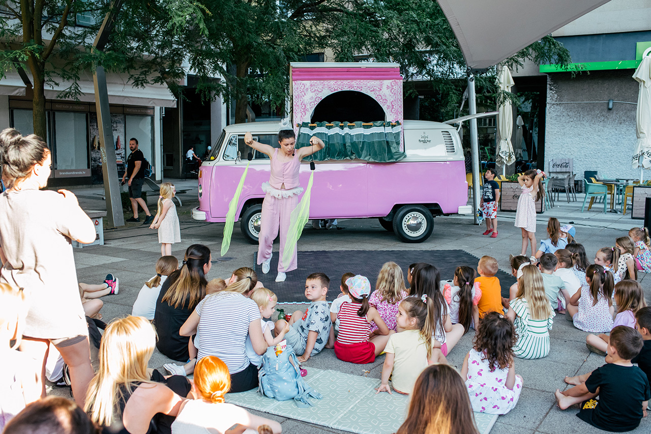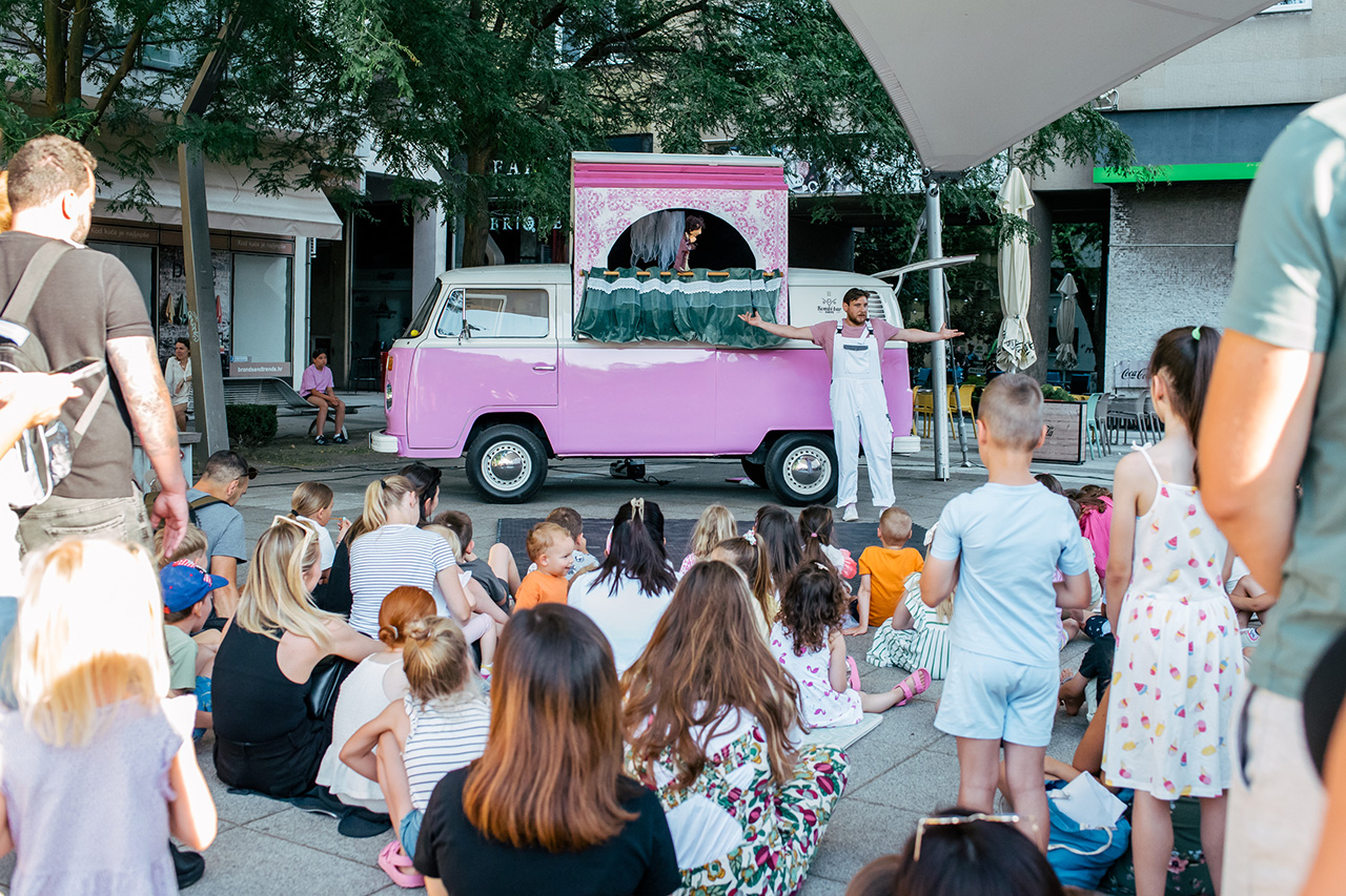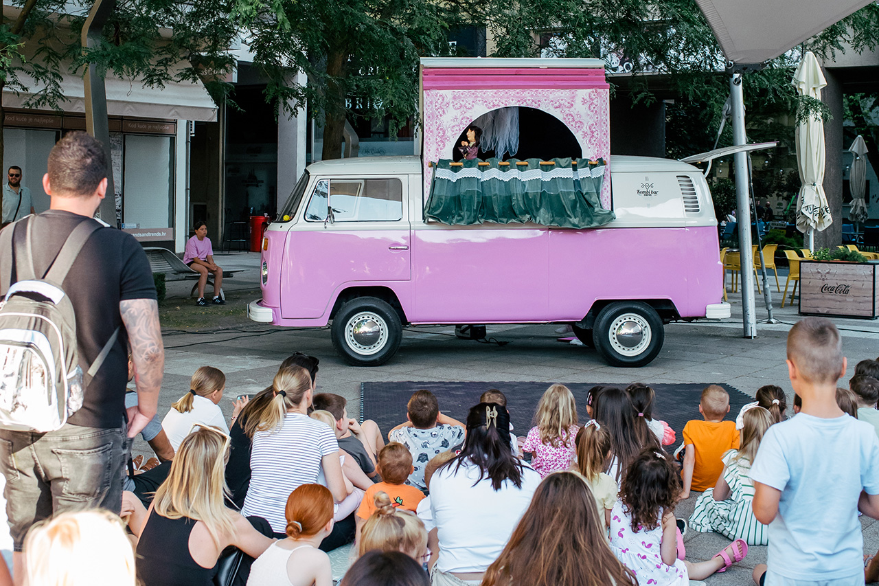 Kad stignemo na odredište i krov se podigne, nastaje pozornica. Sve se pretvara u trenutku. Kombi postaje lutkarsko kazalište, cesta postaje scena, a publika, bilo da je na livadi, ispred škole ili usred trga, dio naše priče.
